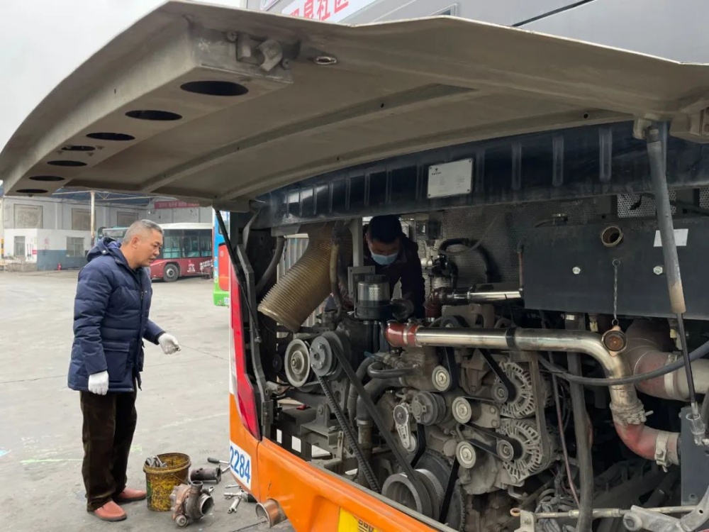 ▲車間修理人員正在維修公交車輛