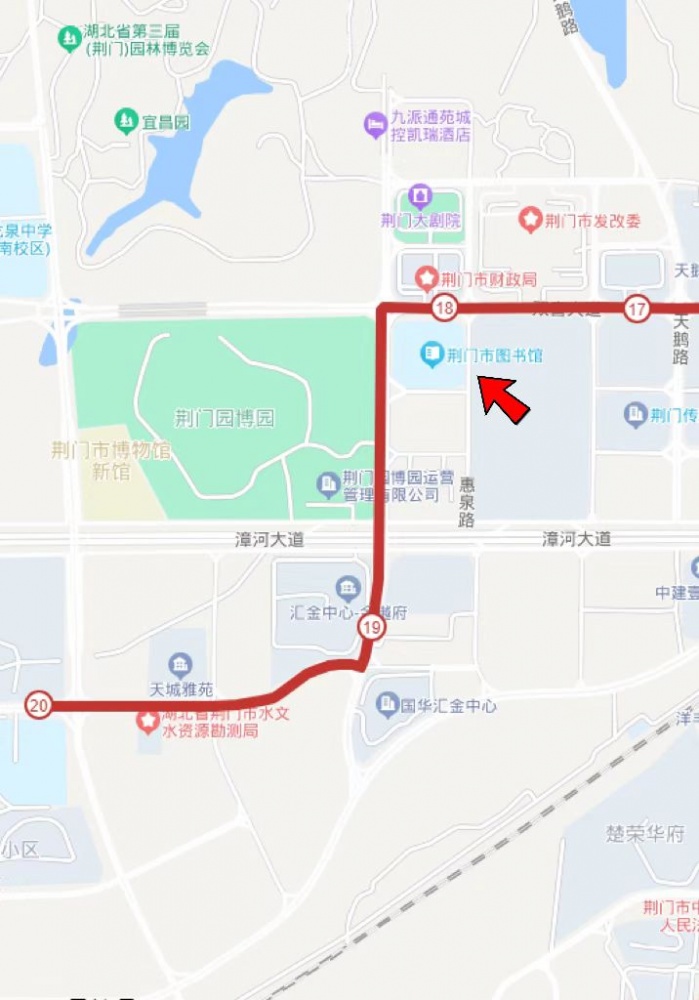 二、乘坐21路(龍泉中學(xué)—漳河旅游碼頭)公交車到漳河大道園博園南門公交站點(diǎn)下車,然后向北大約步行670米。