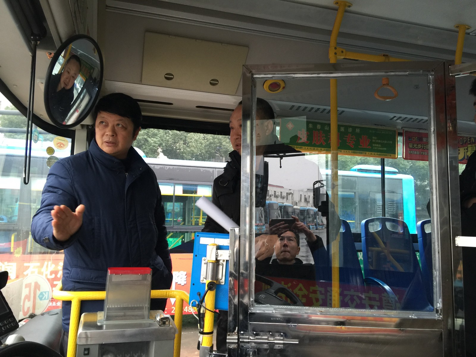 市交投公司黨委委員、荊門公交集團(tuán)董事長趙吉美匯報有關(guān)情況,督查組一行查看了公交集團(tuán)公司兩臺公交駕駛室防護(hù)裝置樣品車輛情況,和企業(yè)負(fù)責(zé)人現(xiàn)場研究生命防護(hù)裝置設(shè)置樣式,本著安全、美觀、經(jīng)濟(jì)的原則確定了下一步安裝的標(biāo)準(zhǔn)。