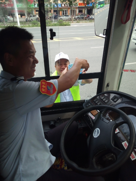 掇刀區(qū)義工聯(lián)協(xié)同公交志愿者為公交司機(jī)送清涼活動(dòng)