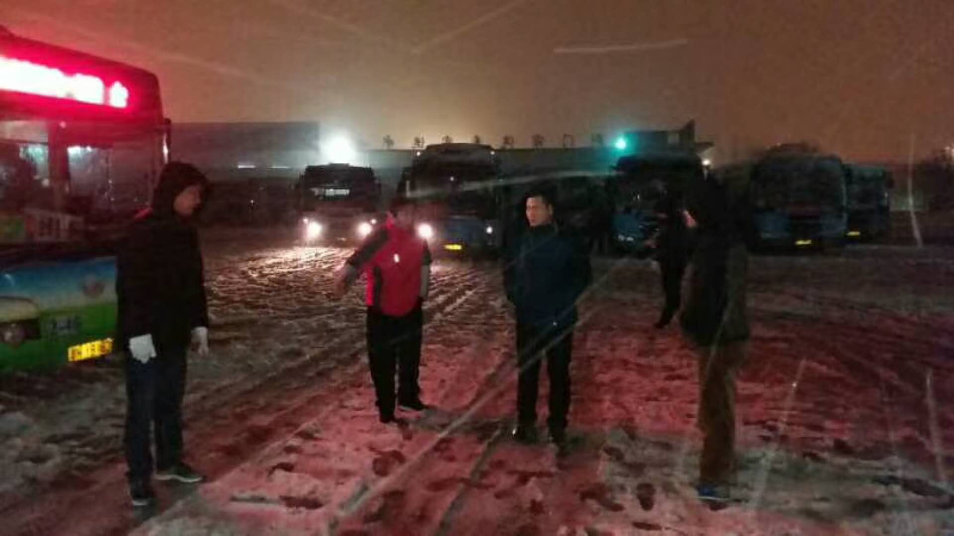 1月3日下午,荊門迎來了新年里第一場(chǎng)大雪,荊門氣象已經(jīng)發(fā)布暴雪警報(bào),收到暴雪警報(bào)后,荊門市公共交通集團(tuán)有限公司立即成立了150人的暴雪應(yīng)急隊(duì),早早準(zhǔn)備了防凍防滑物資:鹽2噸,防滑鏈400余條,鐵鍬60把,救援車10臺(tái);公司領(lǐng)導(dǎo)全部到一線坐鎮(zhèn)指揮,管理人員向近千名駕駛員傳授了雨雪天安全駕駛知識(shí);晚十點(diǎn),巡查人員開始查看危險(xiǎn)路段結(jié)冰情況,確定凌晨裝防滑鏈和撒鹽人員;凌晨4點(diǎn)應(yīng)急人員和駕駛員全部到位,按探路組、裝防滑鏈組、撒鹽組、監(jiān)管組分工負(fù)責(zé),并對(duì)出車駕駛員逐車逐人安全叮囑!以求能確保所有車輛都能一路平安!