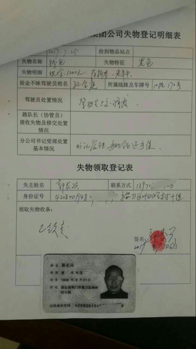 12時(shí),工作人員為郭大爺辦理了領(lǐng)還手續(xù)。郭大爺領(lǐng)到失而復(fù)得的錢包后,詳細(xì)詢問(wèn)了孫師傅的情況,并激動(dòng)的說(shuō)要寫信給媒體感謝孫師傅的義舉。