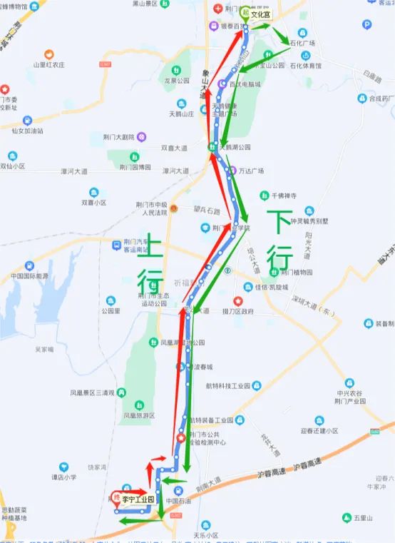 上行線路走向為:福力徳-鳳凰五路-創(chuàng)業(yè)四路-科技園路-創(chuàng)業(yè)二路-興隆大道-虎牙關(guān)大道-白云大道-文化宮。
